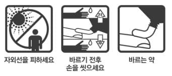 | - 햇빛에 노출되지 않도록 각별한 주의가 필요합니다. - 환부 및 그 주변을 청소한 후 투여한다. - 약을 복용한 후에는 반드시 손을 씻고, 눈에 들어가지 않도록 주의하십시오. - 사용 중 일시적인 자극이 있을 수 있습니다. 증상이 지속되면 전문가와 상의하세요. - 일정기간 복용해도 증상이 호전되지 않으면 전문의와 상담하세요 |